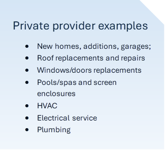 In 2002, lawmakers effectively “privatized” parts of permitting by authorizing licensed private providers to handle plan review and building inspections in lieu of local staff — so projects could move faster and departments couldn’t bottleneck the process.