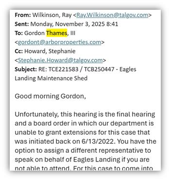 We know that because, at one point, a City of Tallahassee building official told Gordon Thames III that he “does not trust the document review from private providers.” That skepticism — not safety — became the justification for the blizzard of comments and delays that followed.