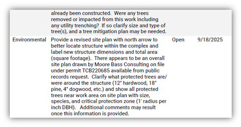 The owner cleared a whopping 28 plan-review comments on a maintenance-shed renovation — that’s an entire house’s worth.